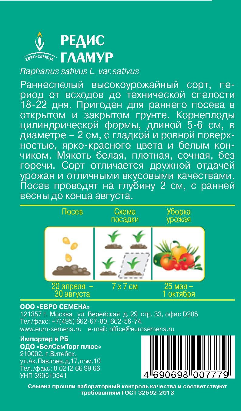 - Семена Редис Гламур цв/п 2г