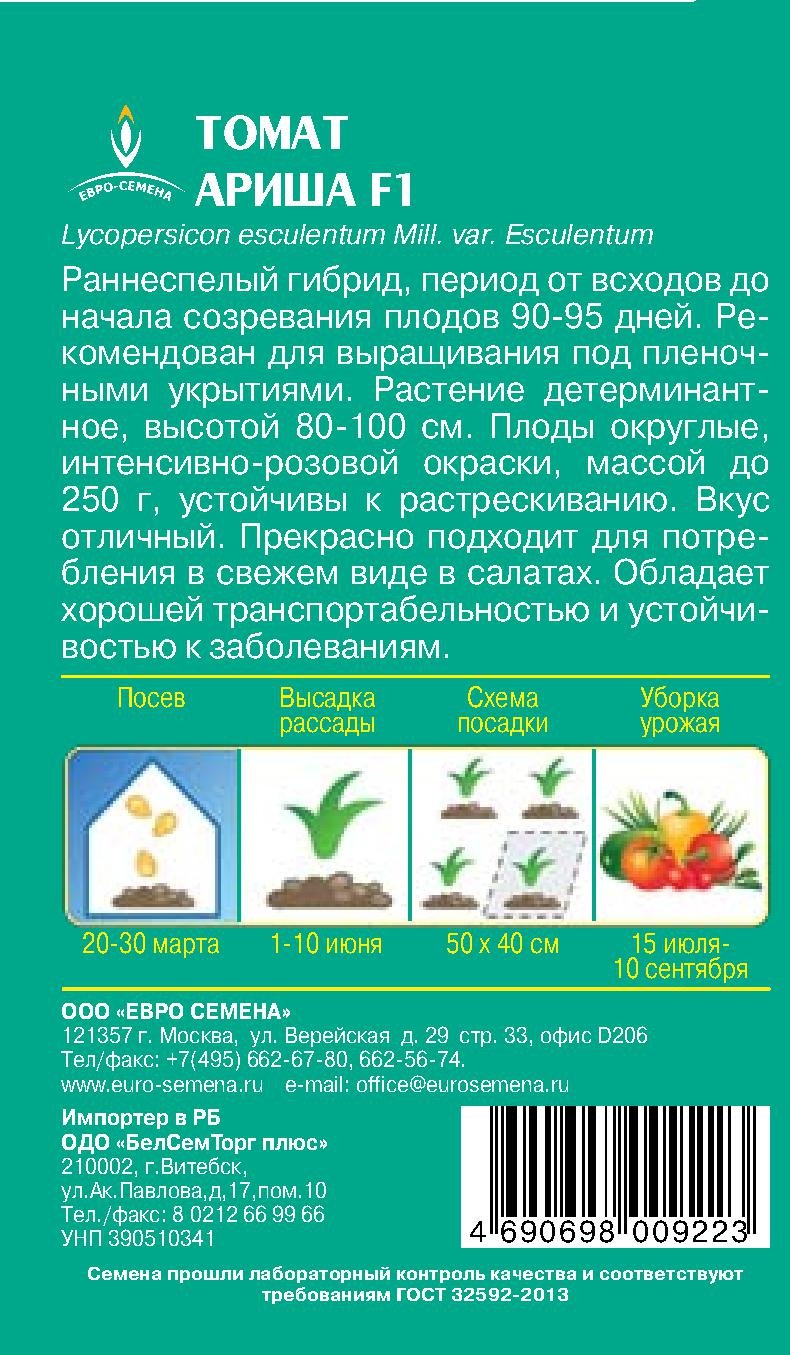 -30%Раннеспелый гибрид, период от всходов до начала созревания плодов 90-95 дней. Рекомендован для выращивания под пленочными укрытиями. Растение детерминантное, высотой 80-100 см. Плоды округлые, интенсивно-розовой окраски, массой до 250 г, устойчивы к растрескиванию. Вкус отличный. Прекрасно подходит для потребления в свежем виде в салатах. Обладает хорошей транспортабельностью и устойчивостью к заболеваниям.