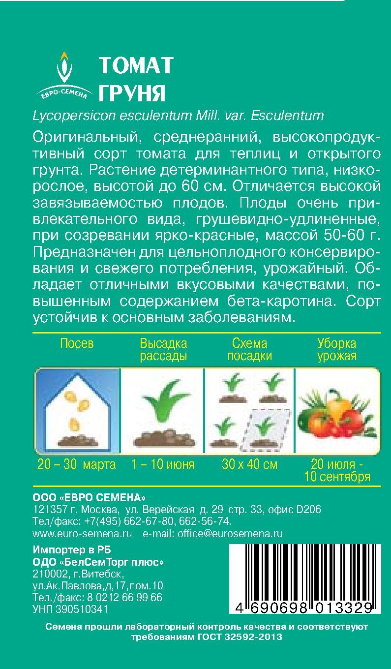 -30%Оригинальный, среднеранний, высокопродуктивный сорт томата для теплиц и открытого грунта. Растение детерминантного типа, низкорослое, высотой до 60 см. Отличается высокой завязываемостью плодов. Плоды очень привлекательного вида, грушевидно-удлиненные, при созревании ярко-красные, массой 50-60 г. Предназначен для цельноплодного консервирования и свежего потребления, урожайный. Обладает отличными вкусовыми качествами, повышенным содержанием бета-каротина. Сорт устойчив к основным заболеваниям.