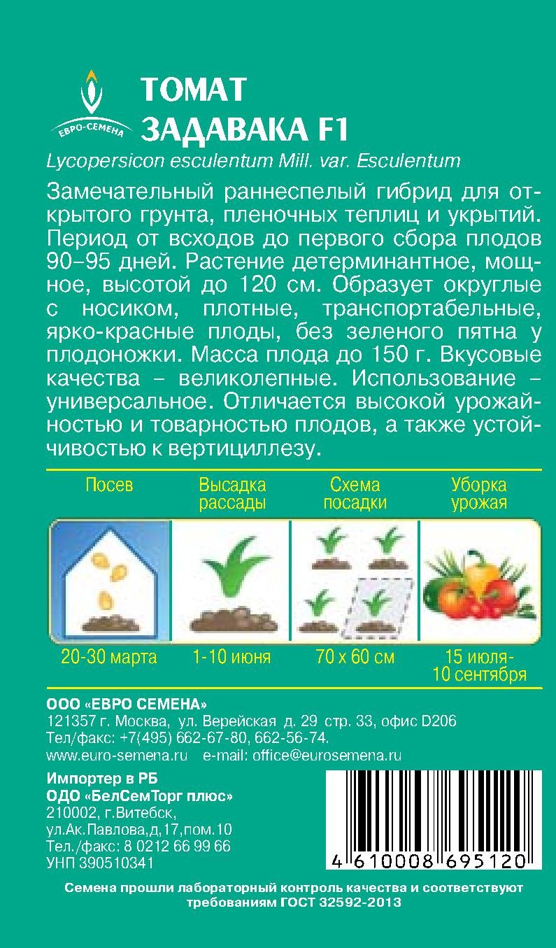 - Семена Томат Задавака F1 цв/п 10шт