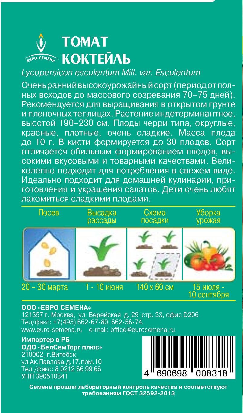 -30%Очень ранний высокоурожайный гибрид (период от полных всходов до массового созревания 70-75 дней). Рекомендуется для выращивания в открытом грунте и пленочных теплицах. Растение индетерминантное, высотой 190-230 см. Плоды черри типа, округлые, красные, плотные, очень сладкие. Масса плода до 10 г. В кисти формируется до 30 плодов. Гибрид отличается обильным формированием плодов, высокими вкусовыми и товарными качествами. Великолепно подходит для потребления в свежем виде. Идеально подходит для домашней кулинарии, приготовления и украшения салатов. Дети очень любят лакомиться сладкими плодами.