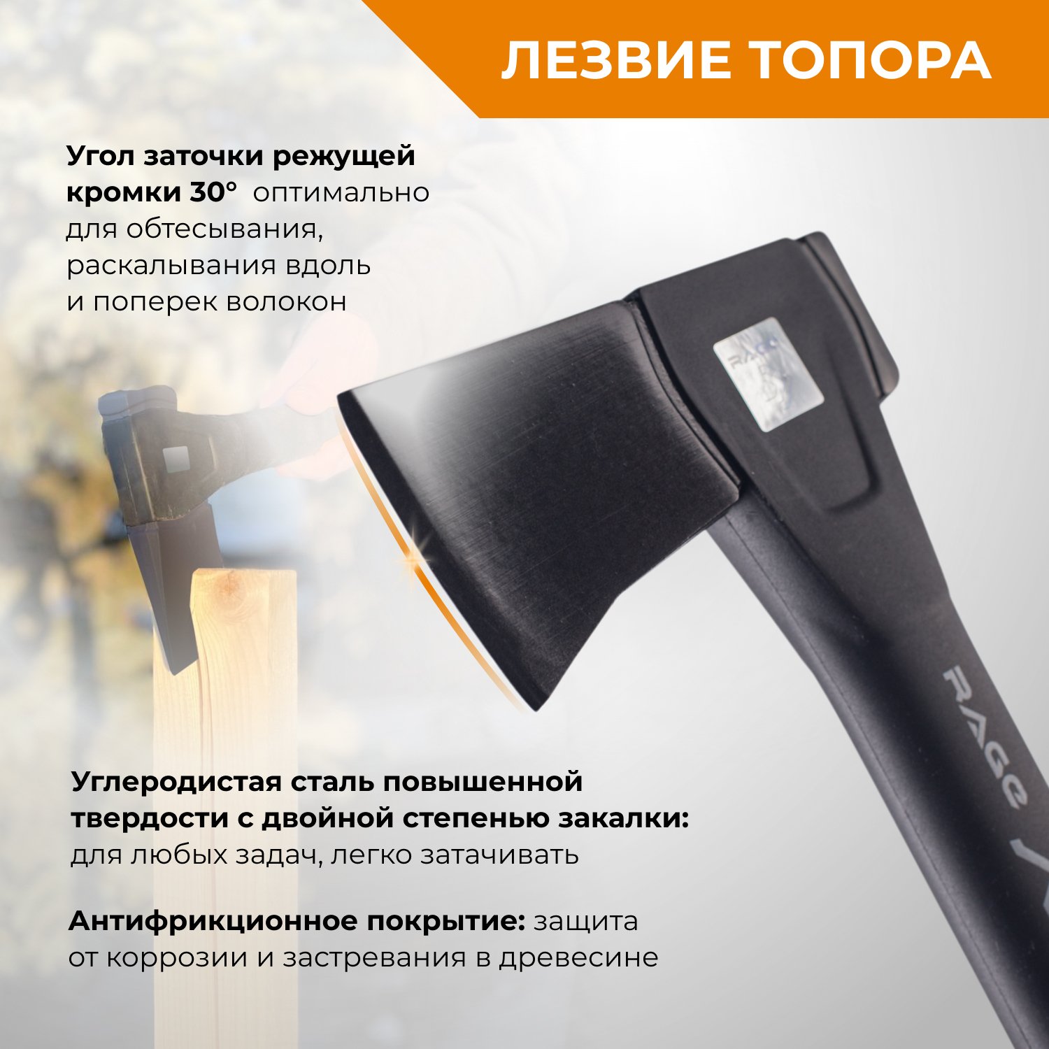 Универсальный топор RAGE X POWER - профессиональный инструмент для выполнения различных работ по дереву. Компактные размеры и продуманная конструкция делают его