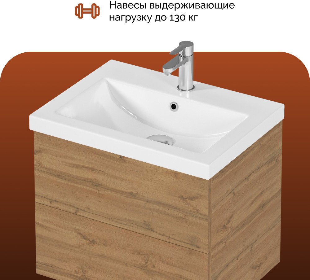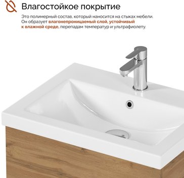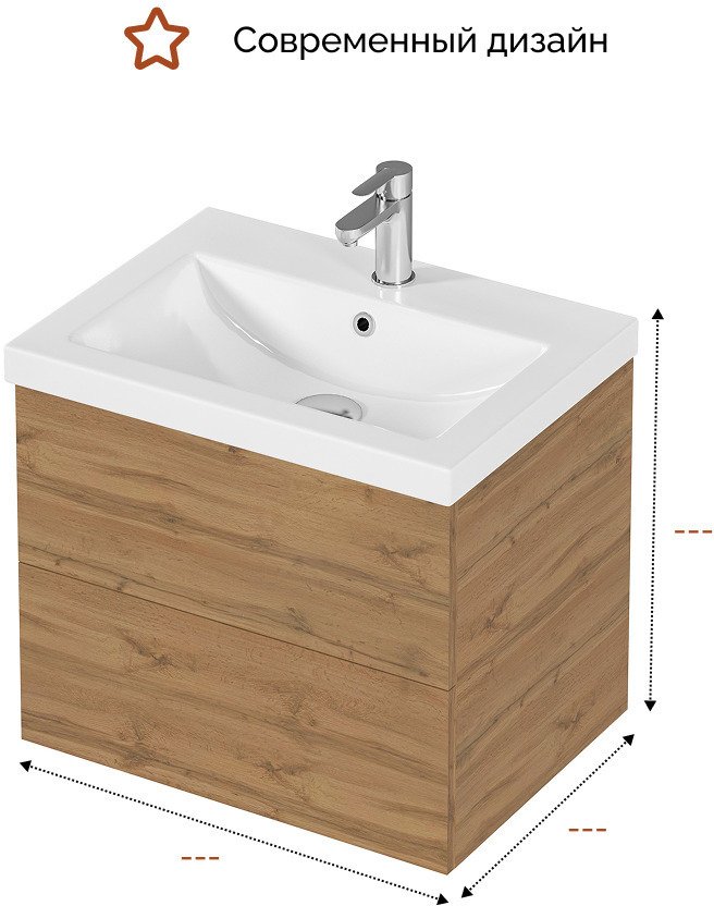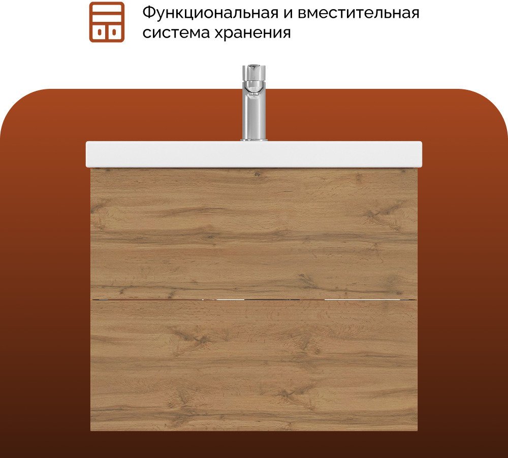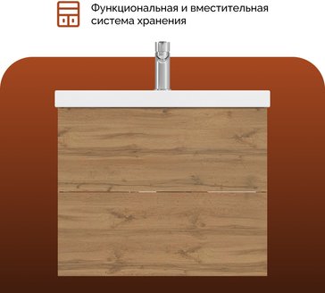 Подвесная тумба MIX 60см в цвете дуб вотан - стильное и функциональное решение для вашей ванной комнаты.