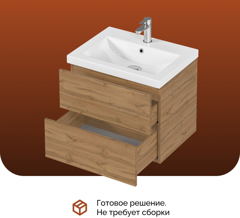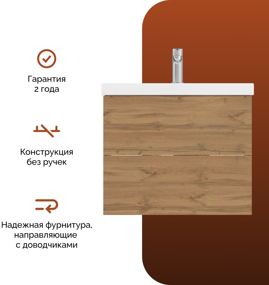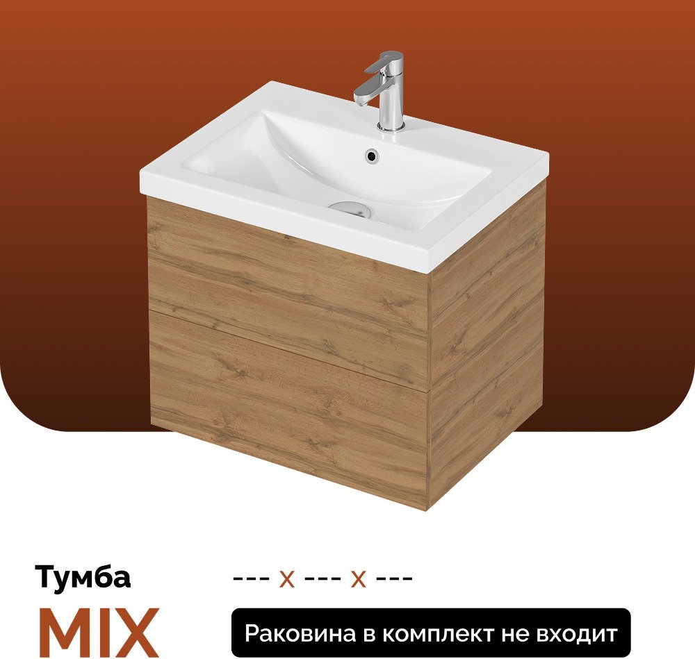 MIX 60см push дуб вотан — тумба без раковины, зато с системой push-open. Ящики открываются лёгким нажатием. Очень доволен качеством и функциональностью!