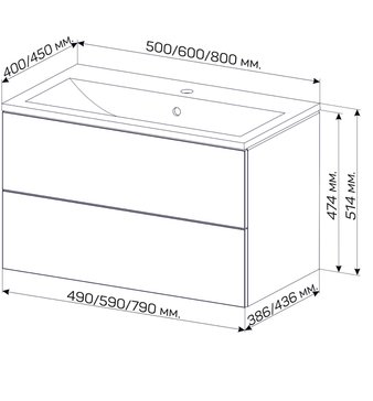 Раковина приобретается отдельно. Рекомендуется использовать модели диаметром 60 см для оптимального сочетания.