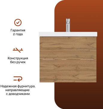 - Тумба подвесная MIX 60см push дуб вотан без раковины