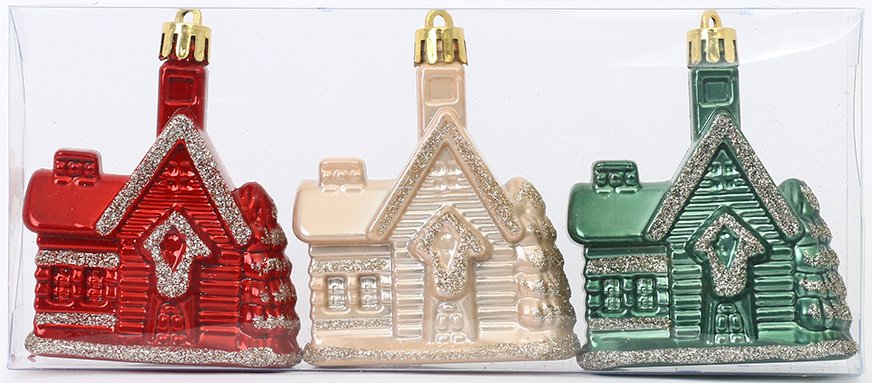Почему наш набор станет украшением вашего праздника Изысканная палитра — сочетание шампань, красного и зелёного создаёт праздничное настроение Оптимальный размер — 8 см, идеально подходят для размещения на ёлке Комплект из 3 штук — целая деревня уютных домиков для вашего декора Ручная проработка деталей — каждый домик уникален и очарователен