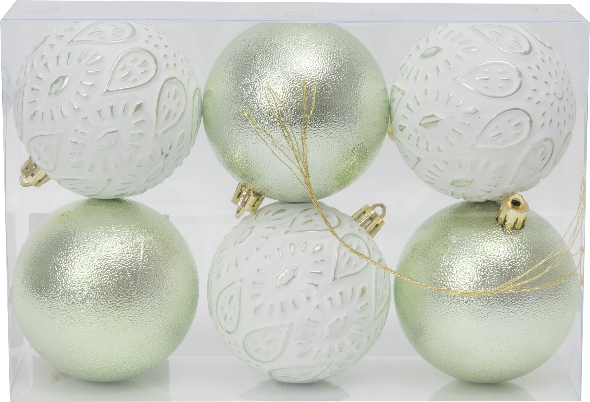 - Набор шаров 6шт 8см, светло-оливковый, ручная роспись, SYQB-0125084