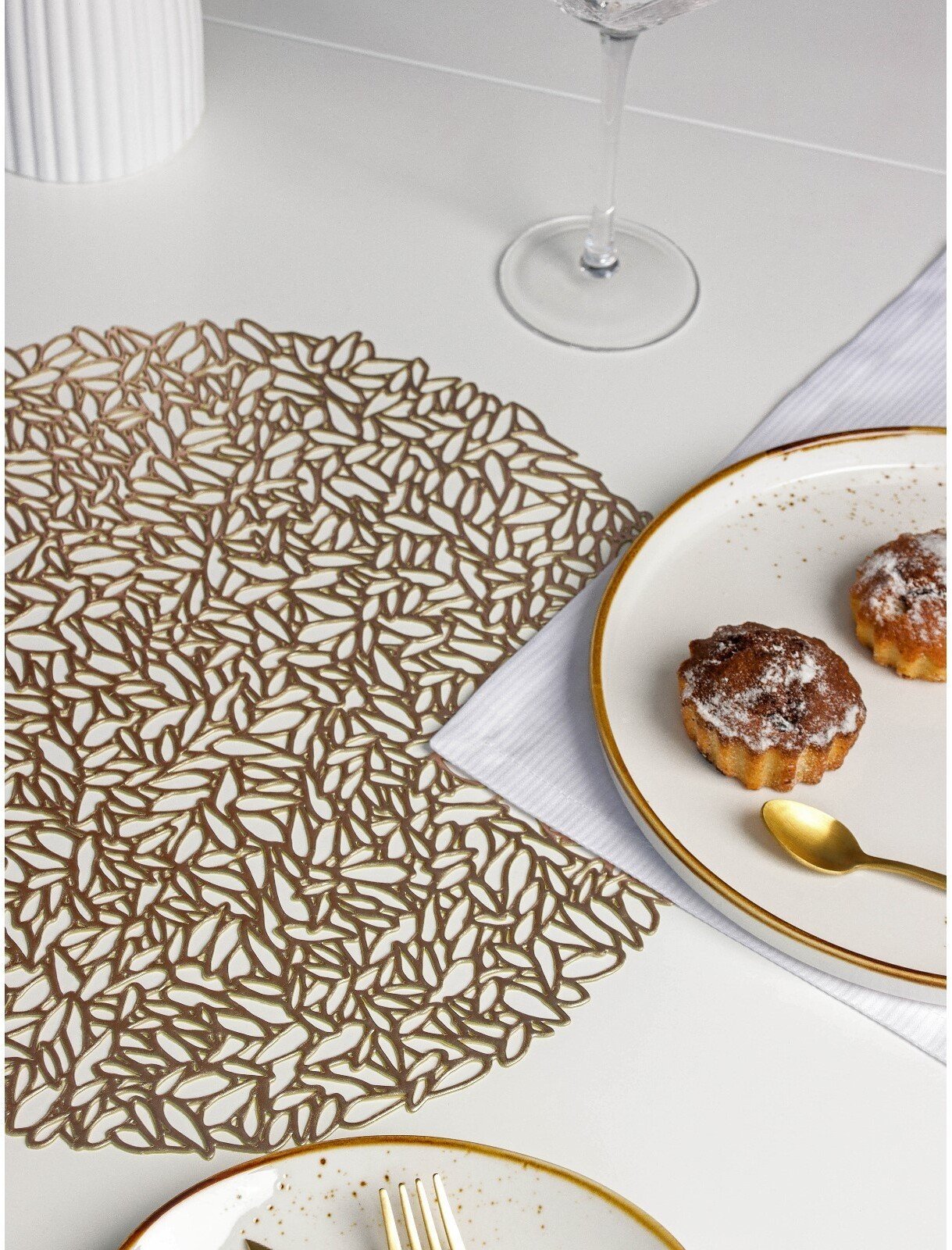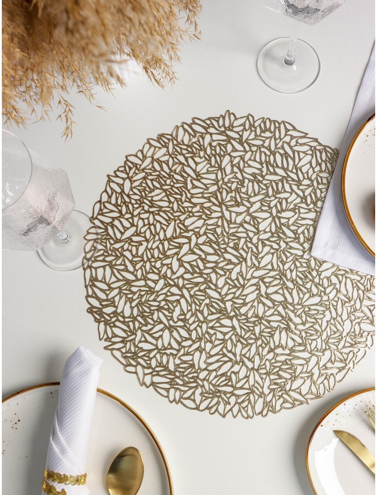 Встречайте гостей и создавайте атмосферу изысканного торжества с великолепной салфеткой размером 38 см. Благородный золотистый оттенок и премиальный ПВХ-материал превратят обычный прием пищи в особенное событие.