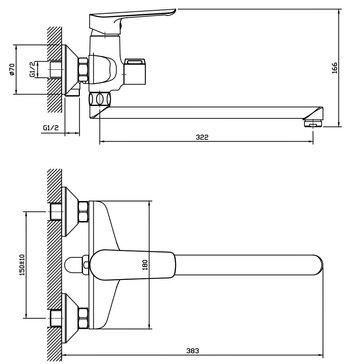 ✔ Поворотный излив 320 мм – удобство использования для ванны и раковины.