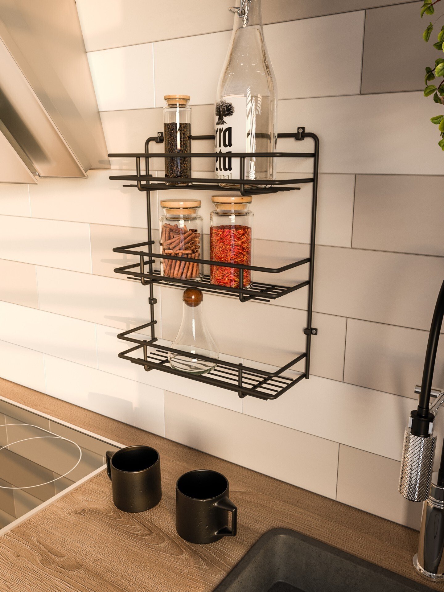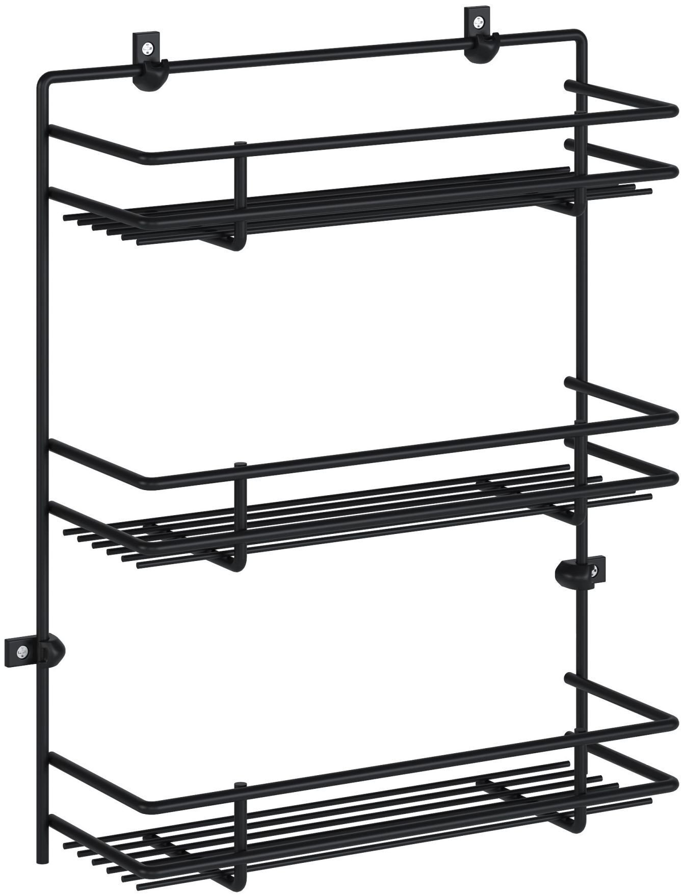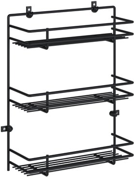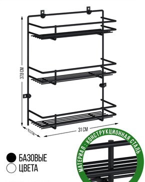 Полка для специй трехярусная - необходима для оптимизации места и наведения порядка. Она крепится к стене или к дверце шкафа. На полке для специй удобно и компактно разместятся все ваши приправы, и всегда будут под рукой. Полка подвесная выполнена из стальной проволоки 6 мм. Выдержит нагрузку до 5 кг. Обратите внимание: Самоклеящиеся крючки входят в комплект.