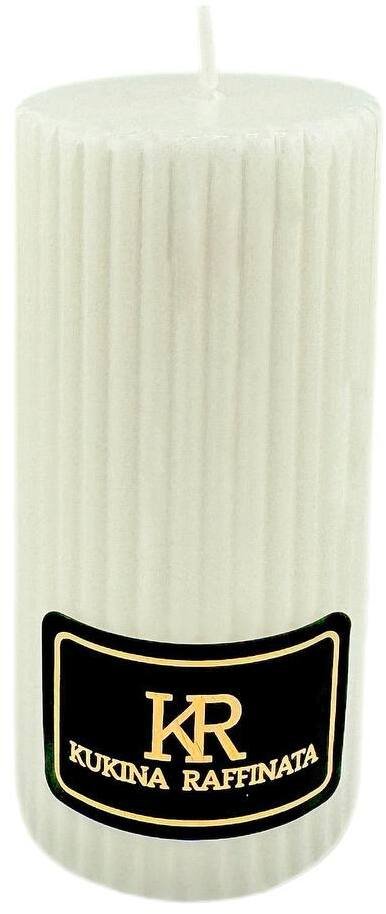 Изящная декоративная свеча Kukina Raffinata в форме рельефного столбика безупречного белого цвета. Её элегантный дизайн с утончённым рельефом придаёт изделию особую изысканность и делает его стильным элементом декора.