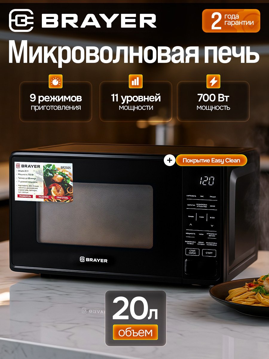 - Печь микроволновая Brayer 2505BR 700Вт 20л сенсорное управление, черный