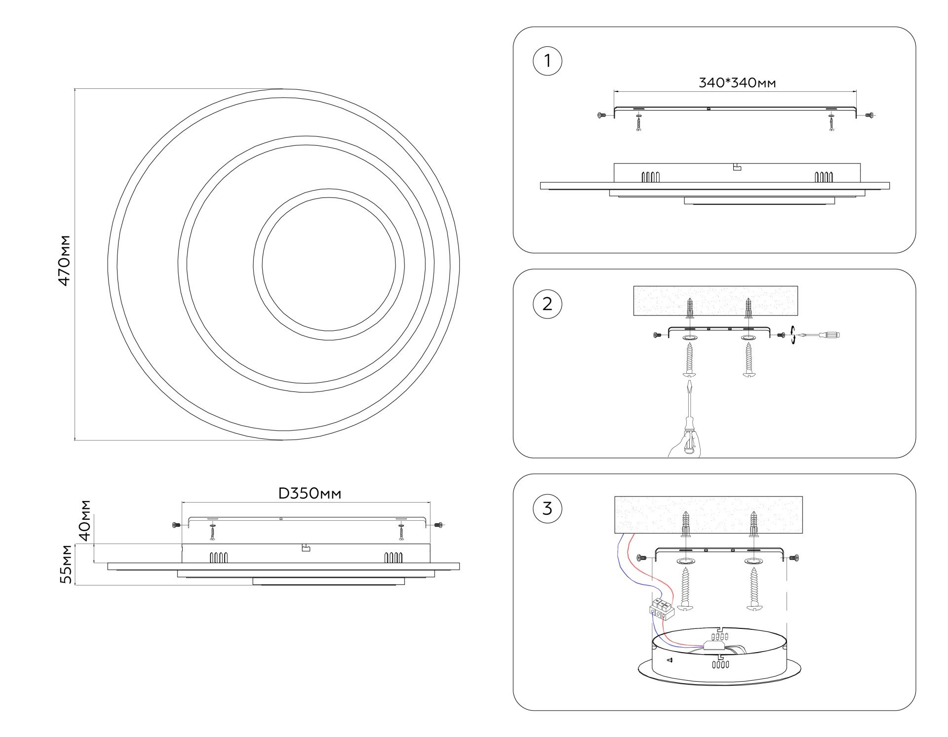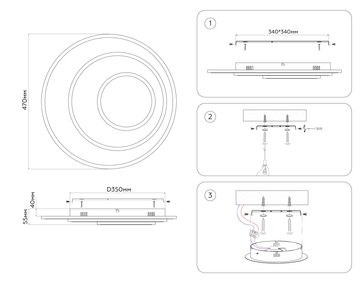 - Светильник настенно-потолочный светодиодный с пультом FA7707 WH белый 3000K-6400K 62W D470х55мм