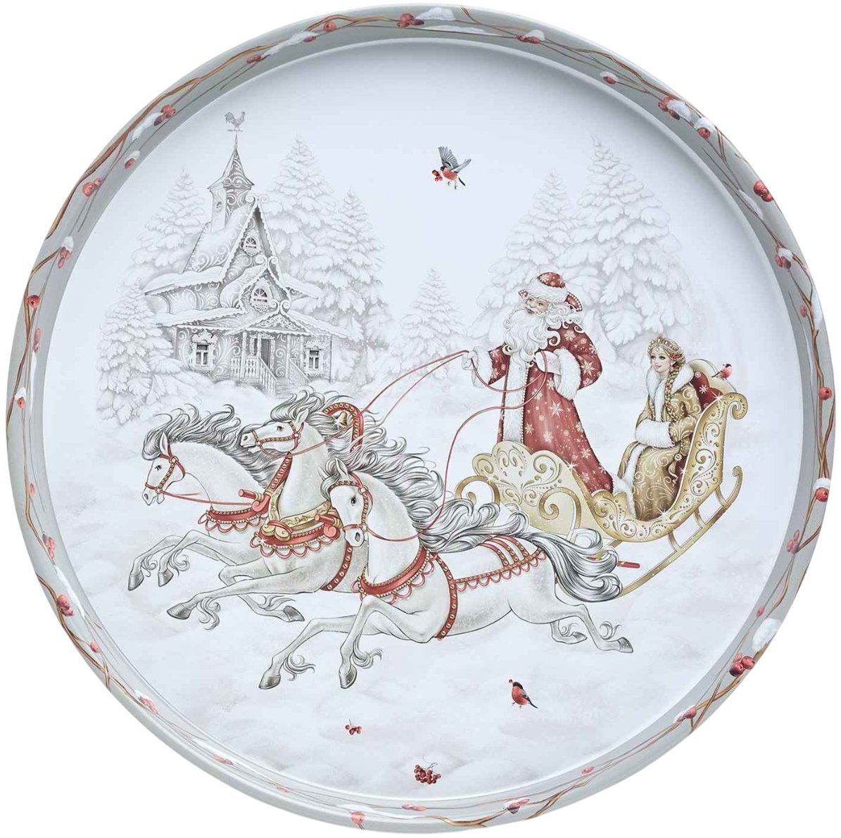 - Поднос сервировочный Agness Морозко Тройка 33см сталь окрашенная