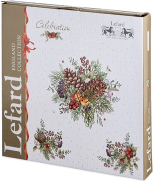 ТМ LEFARD представляет коллекцию "Торжество - Celebration" - изящная сервировка Новогоднего стола. Изделия с любимым символом и атрибутом Нового Года - Елкой выполнены на тонкостенном высококачественном фарфоре. Посуда упакована в красочные коробки. Это прекрасный подарок. Продукция прошла сертификацию, безопасна для контакта с пищевыми продуктами. Не рекомендуется использовать в микроволновой печи, мыть в посудомоечной машине.