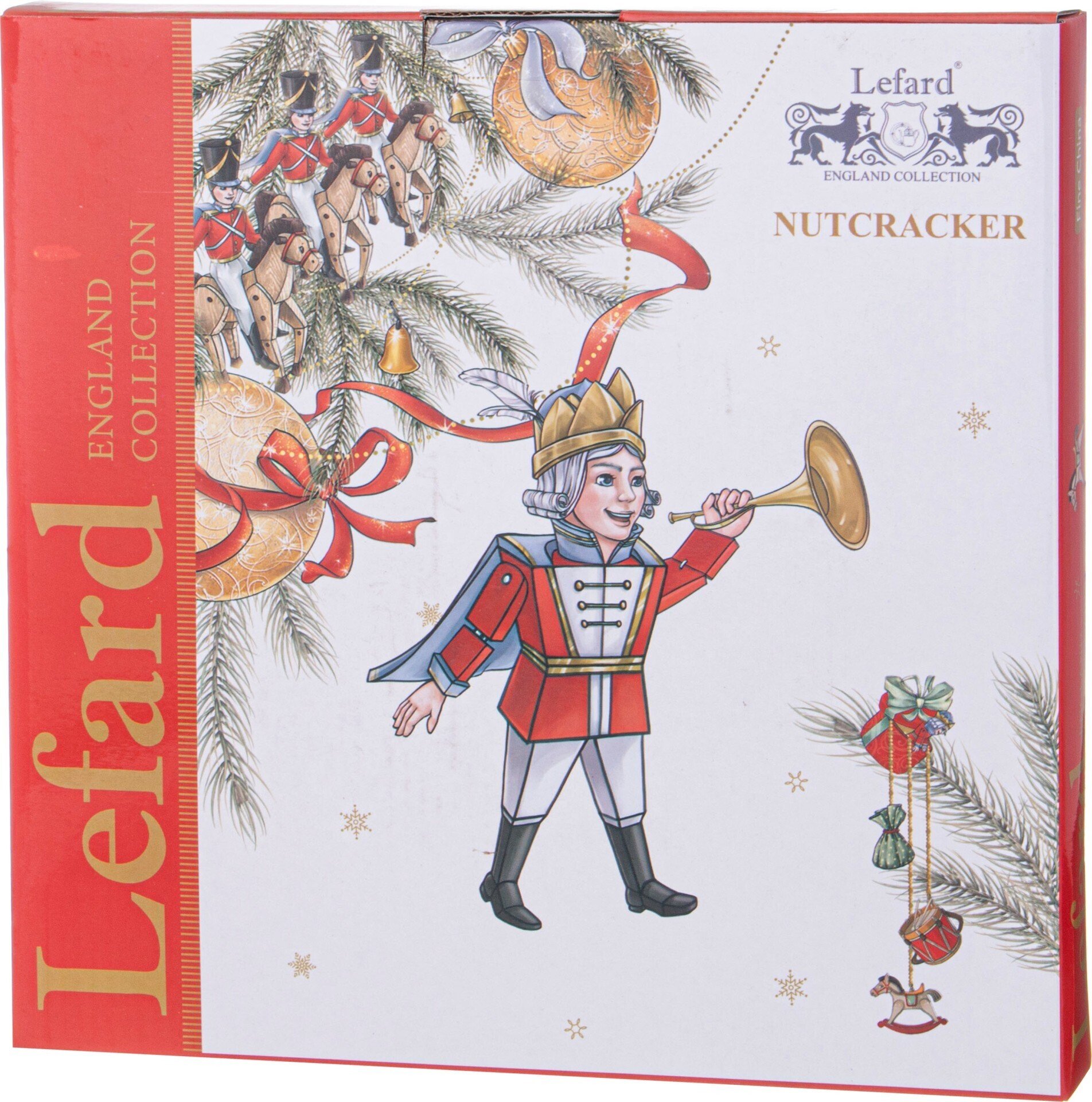 ТМ LEFARD эксклюзивная коллекция «Nutcracker» - Щелкунчик создана по мотивам одноименной истории, с которой знакомы все дети и взрослые. Волшебная история о новогоднем чуде идеально подходит для создания праздничного настроения. Широкий ассортимент тарелок, салатников, кружек, чайных пар поможет сервировать праздничный стол и создать сказочную атмосферу. Все изделия выполнены из качественного тонкого фарфора. Прямые современные формы, удобные объемы. Стильная, подарочная упаковка. Дарите сказку друзьям и близким людям! Можно использовать в СВЧ, не рекомендуется мыть в посудомоечных машинах во избежание повреждения золотой отводки (деколи) на изделиях.