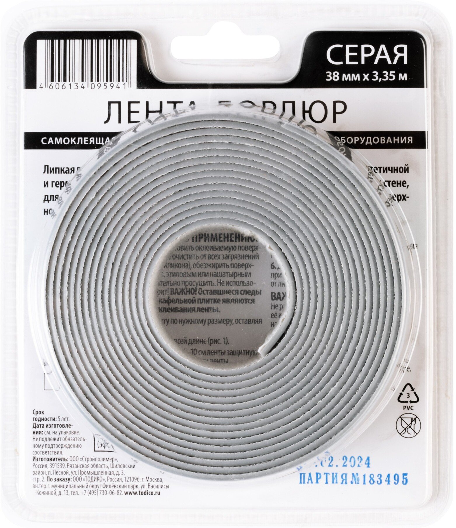 - Лента-бордюр самоклеящаяся 38мм х 3.35м ТМ Аккурат серый