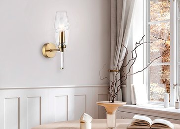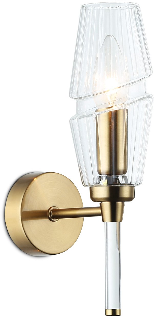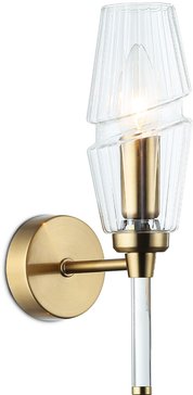 Настенный светильник LH55204 BS/CL (латунь/прозрачный) — модель в стиле модерн от бренда Ambrella. Имеет металлический каркас цвета латунь и стеклянный конусный плафон. Рассчитан на одну лампу с цоколем E14 (максимальная мощность — 40 Вт). Габариты: 150×80×280 мм (длина×ширина×высота). Подходит для помещений площадью 2–4 м². Монтаж накладной, крепление на планку. Степень защиты — IP20, класс электробезопасности — II. Гарантия — 2 года, срок службы — до 10 лет.