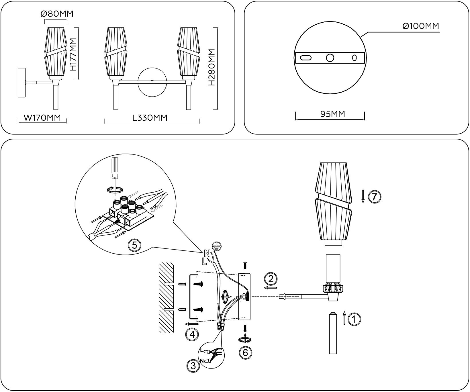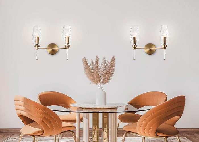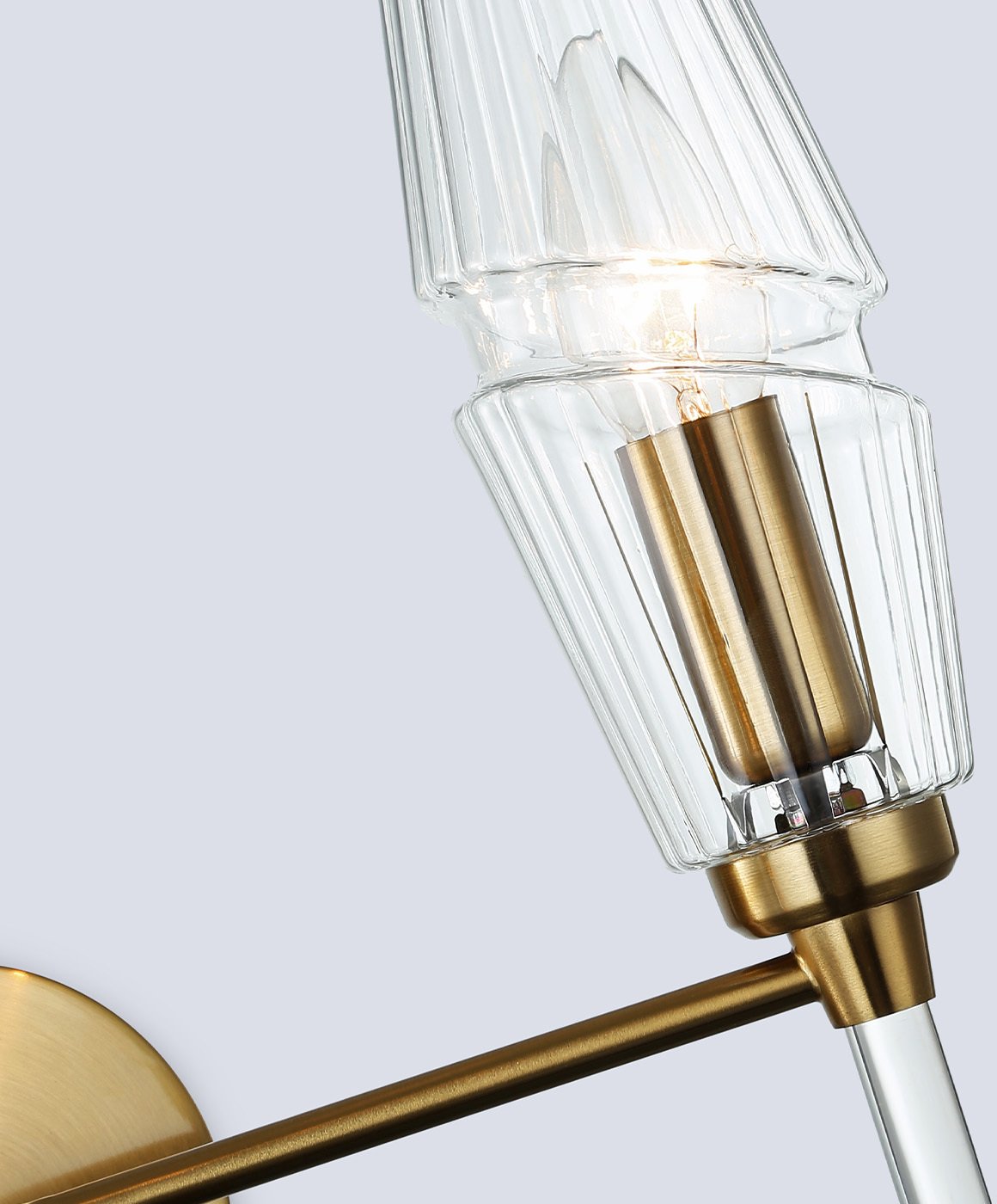 Настенный светильник LH55206/2 BS/CL (латунь/прозрачный) в стиле модерн состоит из металлического латунного каркаса и двух стеклянных прозрачных плафонов. Рассчитан на две лампы с цоколем E14 (максимум 40 Вт каждая). Габариты: 330 × 170 × 280 мм. Подходит для помещений площадью 2–4 м² — гостиной, спальни, прихожей или кухни. Монтаж накладной (на планку), степень защиты IP20, рабочее напряжение — 220 В. Срок службы — до 10 лет, гарантия — 2 года.