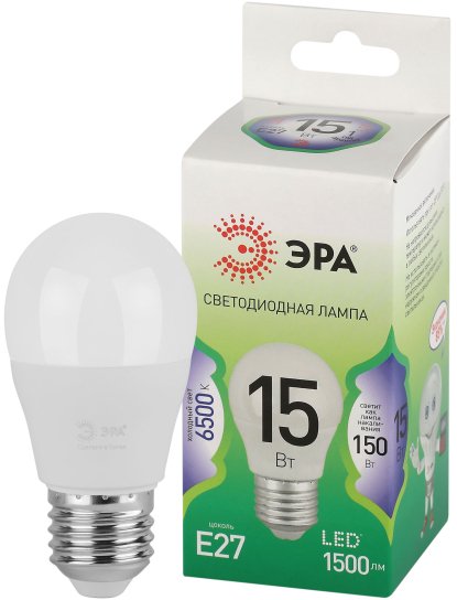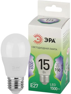 - Лампочка светодиодная ЭРА GREEN LINE LED P45-15W-865-E27 GL E27 15 Вт шар холодный свет