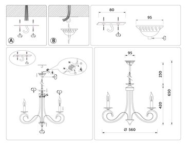 - Светильник подвесной TR9612/6 BK черный E14/6 max 40W D560х650мм
