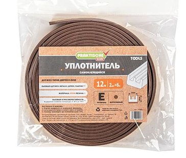 - Уплотнитель самоклеящийся PRAKTISCHE HOME 9х4мм Е-12м коричневый