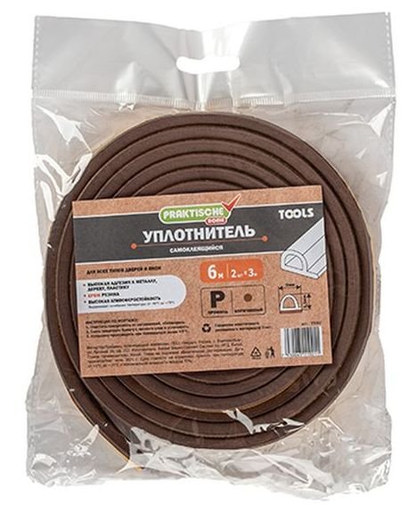 - Уплотнитель самоклеящийся PRAKTISCHE HOME 9х5,5мм Р-6м коричневый