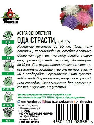 - Семена Астра Ода страсти игольчатая смесь 0,2г