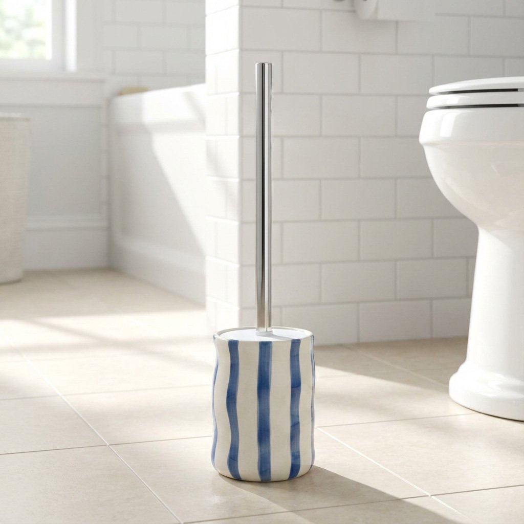 - Ершик для унитаза Zenfort Ривьера, керамика, синяя полоска