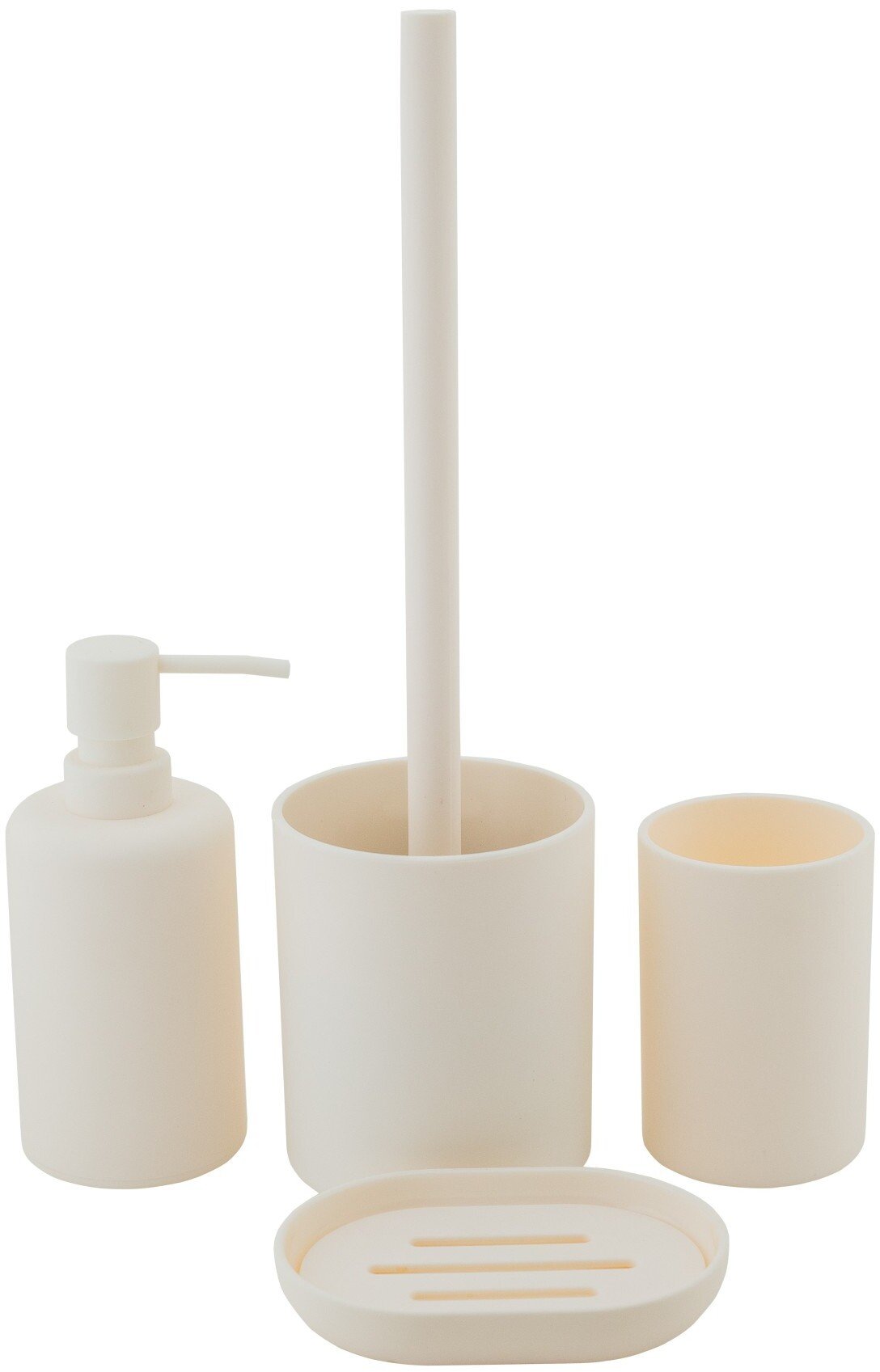 В комплекте идет подстаканник в тон, который скрывает рабочую часть ершика и собирает лишнюю воду после использования. Дизайн подстаканника гармонирует с другими аксессуарами коллекции SWANNY CREAM5.