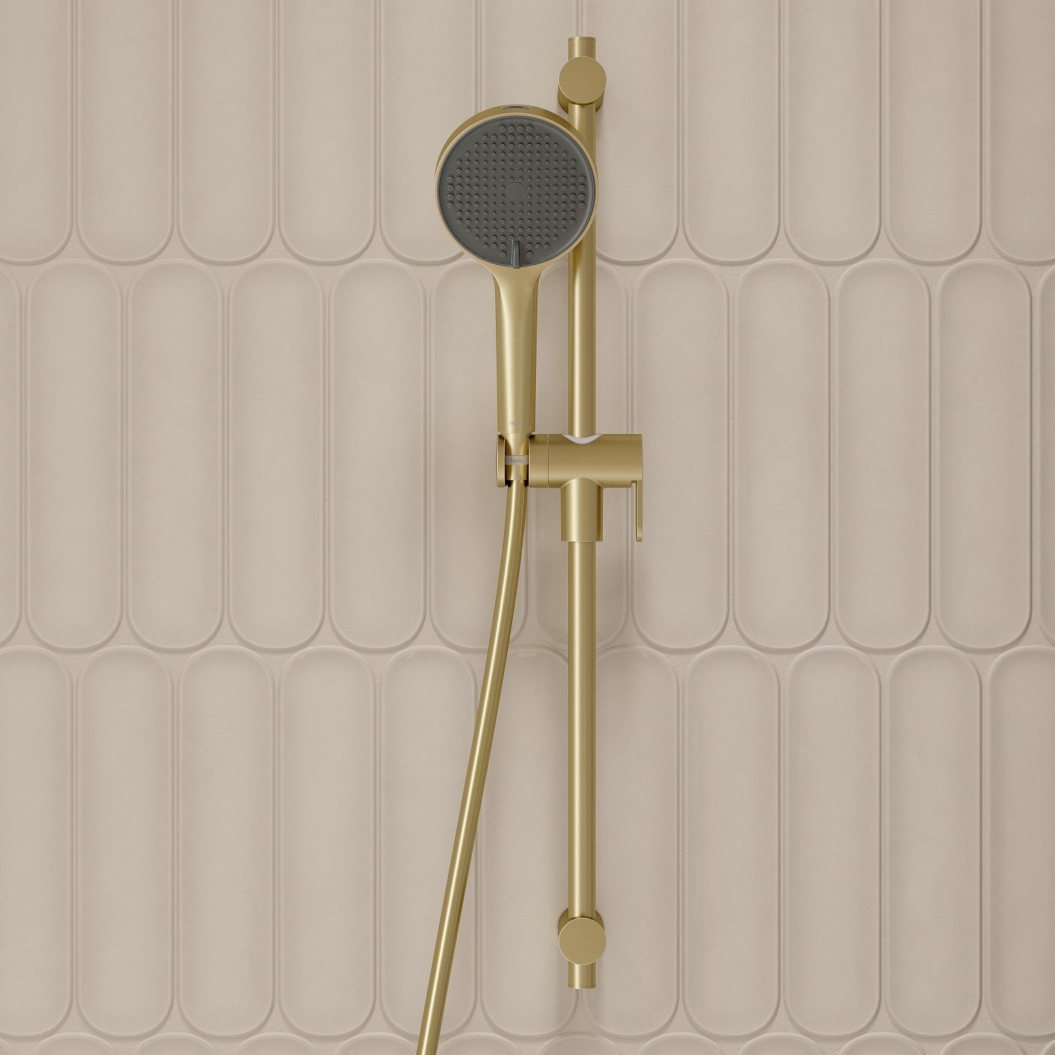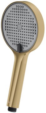 -30%Ручная лейка для душа Aiger (диаметр 120 мм) в трендовом оттенке матового золота выглядит красиво, стильно и современно благодаря однотонной темно-серой лицевой части и силиконовым форсункам в тон. Лейка будет гармонично сочетаться с любым одноцветным смесителем и душевым шлангом благодаря универсальному соединению G ½.