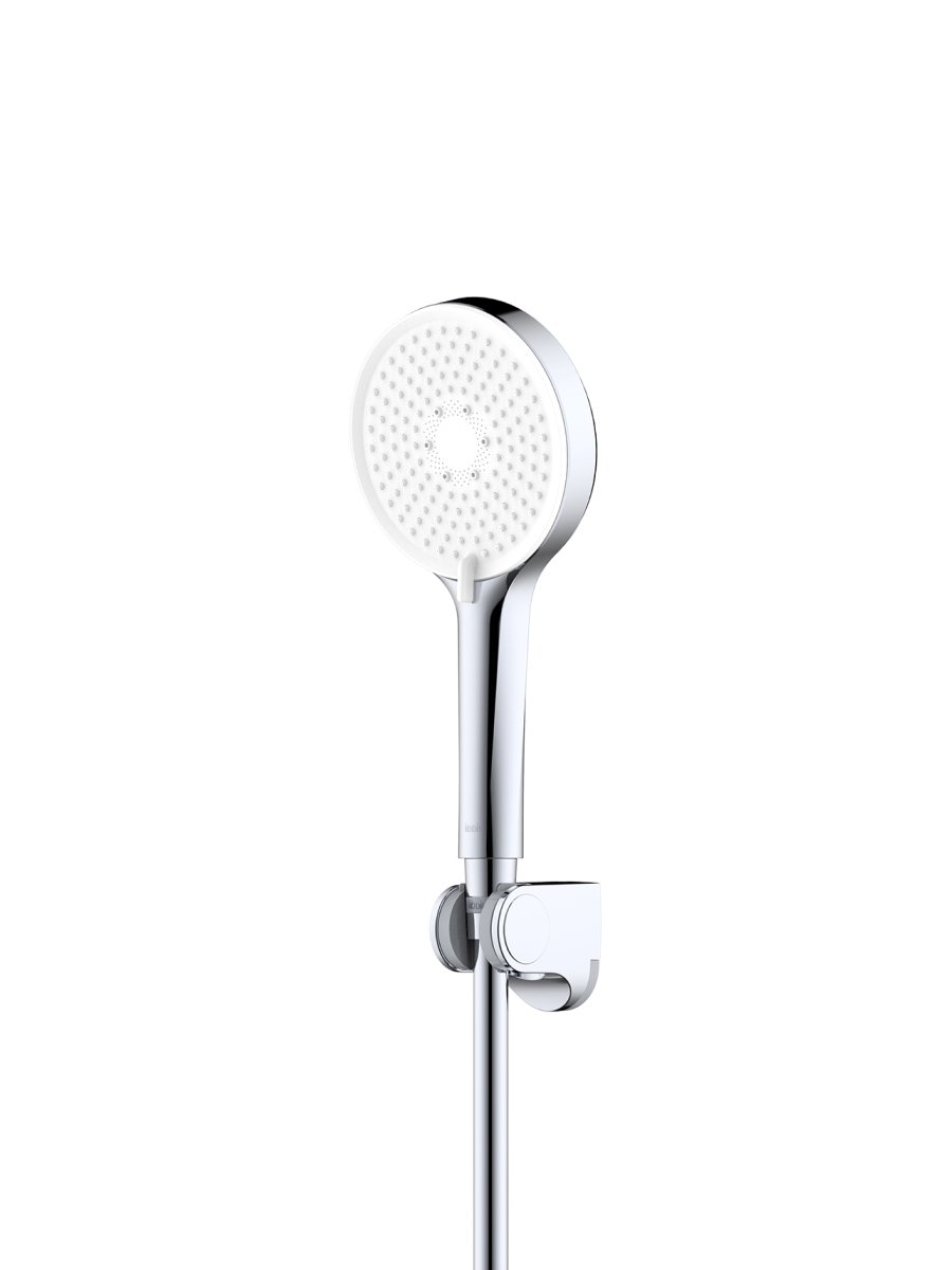 Ручная лейка (диаметр 122 мм) с тремя режимами (Rain, Mist, Rain&Mist). Ухаживать за ней просто: мягкие форсунки легко очищаются от загрязнений и известкового налета – достаточно провести по ним пальцем.