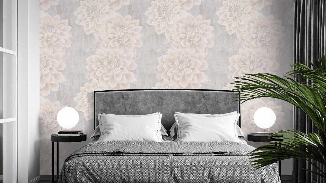 Компаньон с текстильной фактурой и выразительным крупным рельефом визуально выравнивает поверхность и скрывает дефекты стен, создавая идеально подходящий фон для цветочного мотива. А тактильная притягательность фактуры добавляет интерьеру уюта.